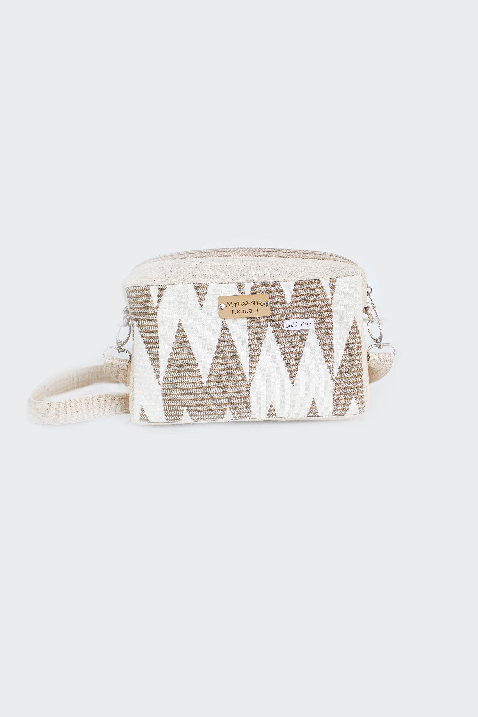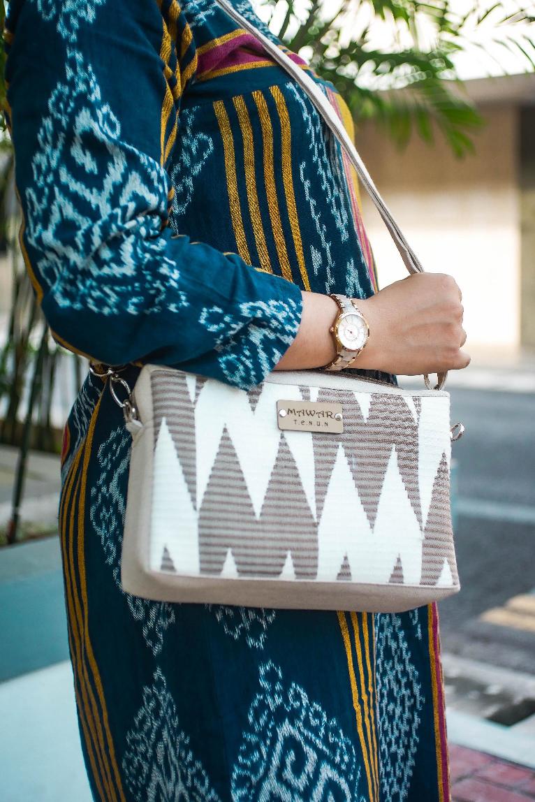 Produk ini dihasilkan menggunakan motif kain tenun rang-rang, dari sisa kain tenun yang salah jahit. Tahan hujan, tidak tembus air