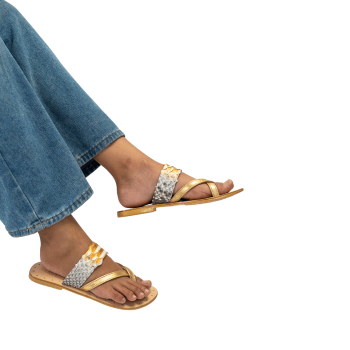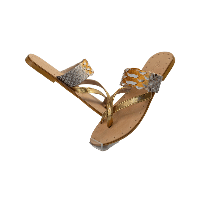 Teispirasi dr Flat Gladiator yg terbuat dr kulit .... Terciptalah Kombinasi Pytin Dgn Kulit Domba Gold Yg Sangat Mewah Dan Elegant Untuk Penampilan Sehari hari