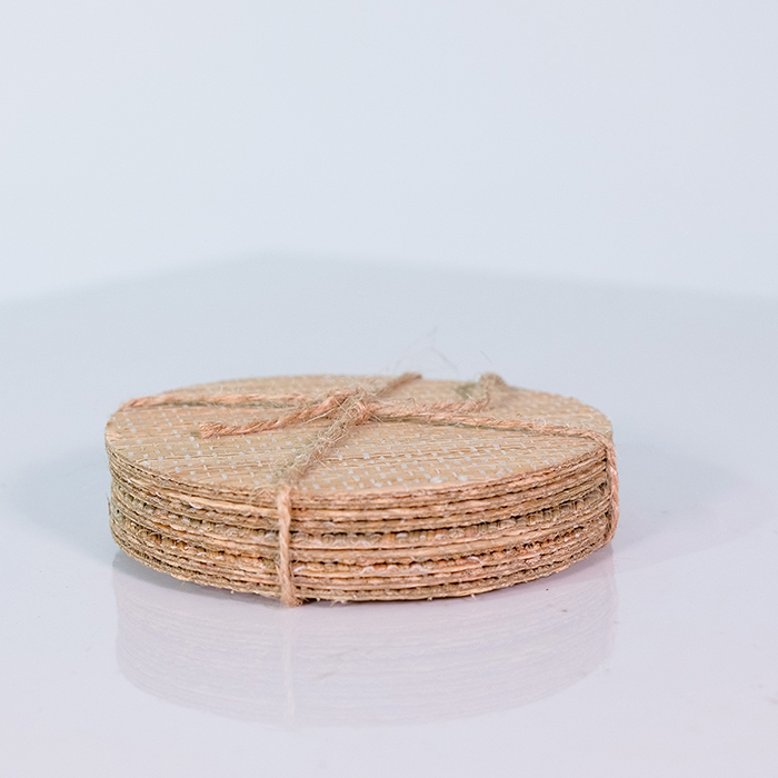 Coaster atau tatakan gelas yang terbuat dari mendong dapat memberikan kesan natural. Sangat cocok digunakan untuk teman penyajian kopi atau jus.