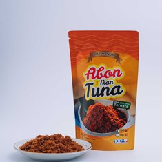 - Abon ikan tuna terbuat dari olahan daging Tuna segar yang diracikan dengan rempah-rempah segar,menghasilkan tekstur dan cita rasa gurih,cocok dimakan dengan nasi dan bubur.