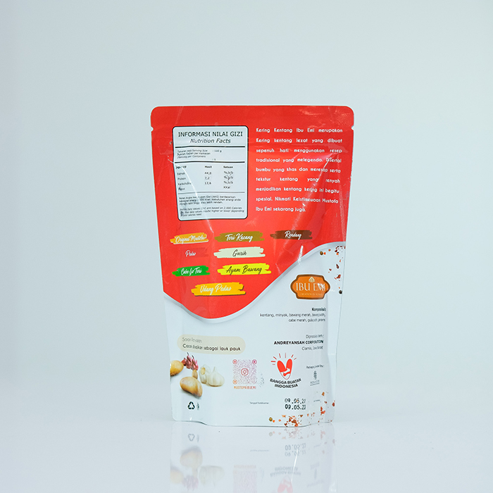 Kering Kentang Mustofa Ibu Emi adalah makanan yang terbuat dari kentang pilihan dan bumbu rempah alami sehingga menjadikan mustofa ibu emi satu satunya Kering Kentang yang renyah dan tahan lama dengan variasi rasa yang beragam.
