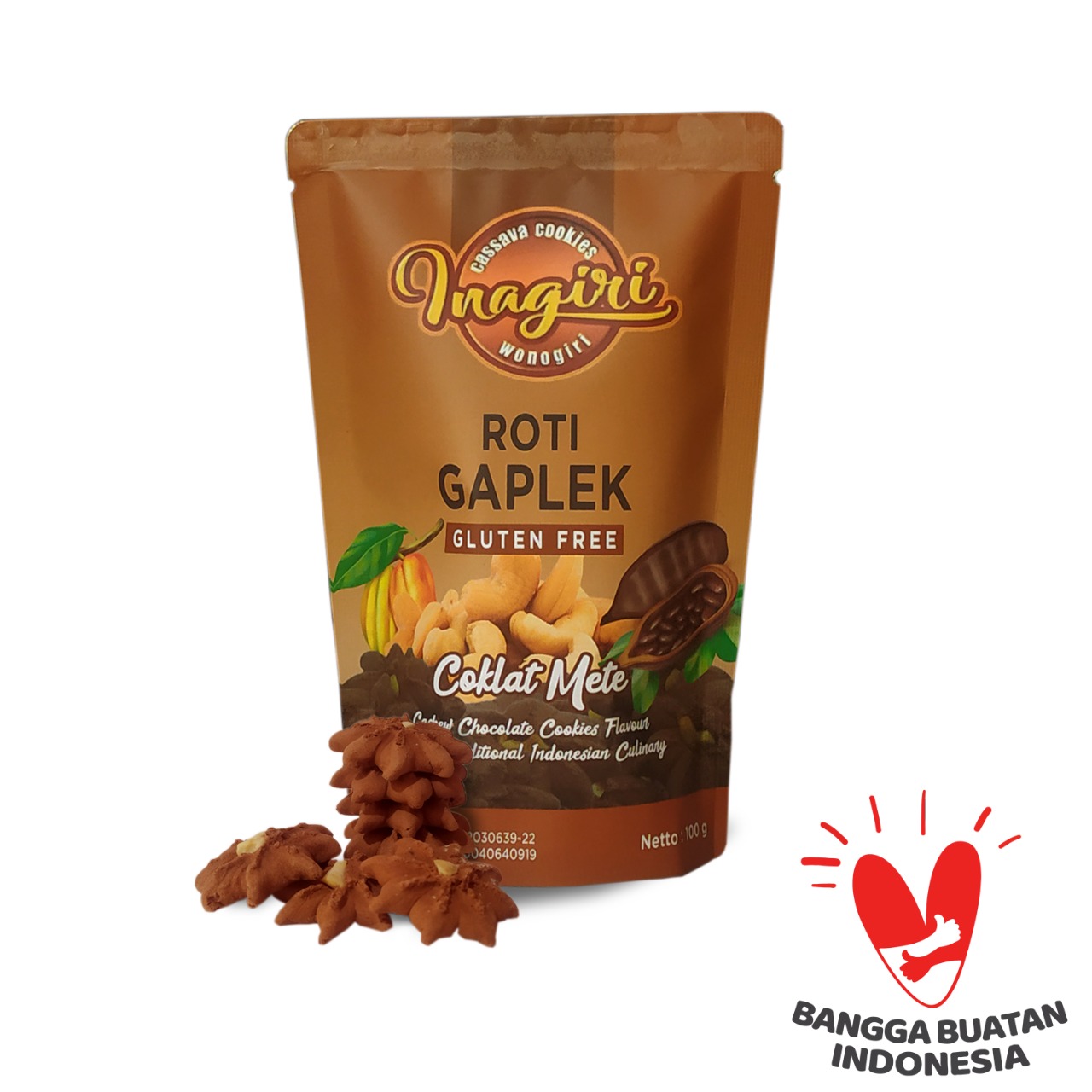 - Cassava Cookies Inagiri Coklat Mete merupakan kue kering yang terbuat dari bahan baku 100% tepung mocaf yang dipadu dengan coklat asli dan mete diolah menggunakan teknologi mesin automatic cookies yang sudah terstandar foodgrade dan hygenis sehingga menghasilkan camilan sehat.
