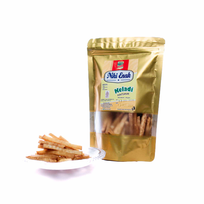 | Stik Keladi adalah salah satu produk Best Seller di Niki Enak Enak yang sudah tersedia di toko oleh-oleh Pontianak dan e-commerce sehingga sudah dijadikan sebagai oleh-oleh ke seluruh Indonesia maupun Luar Negeri. Produk ini terbuat dari buah keladi pilihan yang dipotong memanjang sehingga menghasilkan camilan stik keladi yang enak dan gurih. |