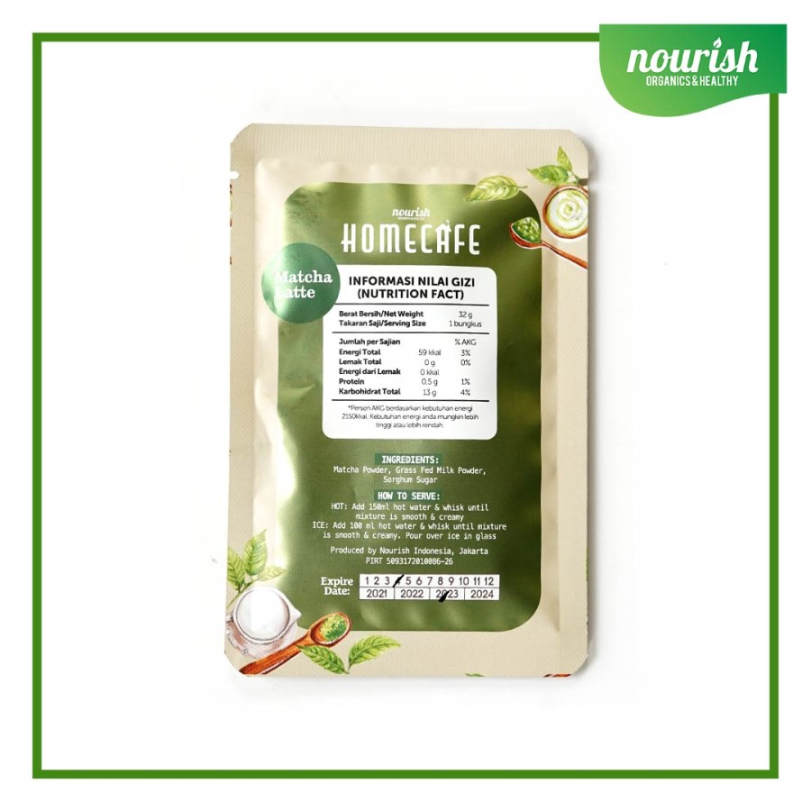 Sama dengan varian lainnya, Homecafe Matcha Latte menggunakan susu sapi grass-fed yang tumbuh sehat, bahagia dilepas di padang rumput tanpa disuntik antibiotik dan hormon sehingga susu yang mereka hasilkan mengandung vitamin D yang tinggi, tinggi beta karoten, lebih tinggi asam lemak tak jenuh yang baik bagi tubuh seperti omega 3. Menggunakan gula sorghum yang low GI sehingga tidak membuat gula darah naik drastis.