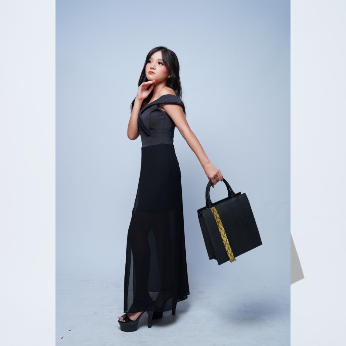 Totebag yang menggunakan kombinasi bahan tenun dan kanvas