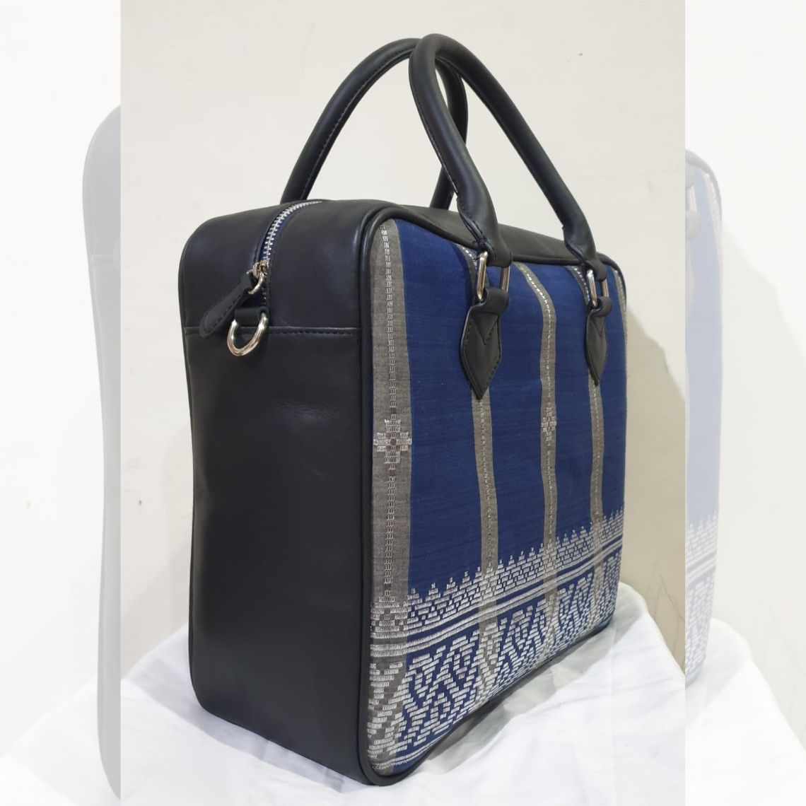 Handbag yang menggunakan kombinasi bahan tenun dan kulit