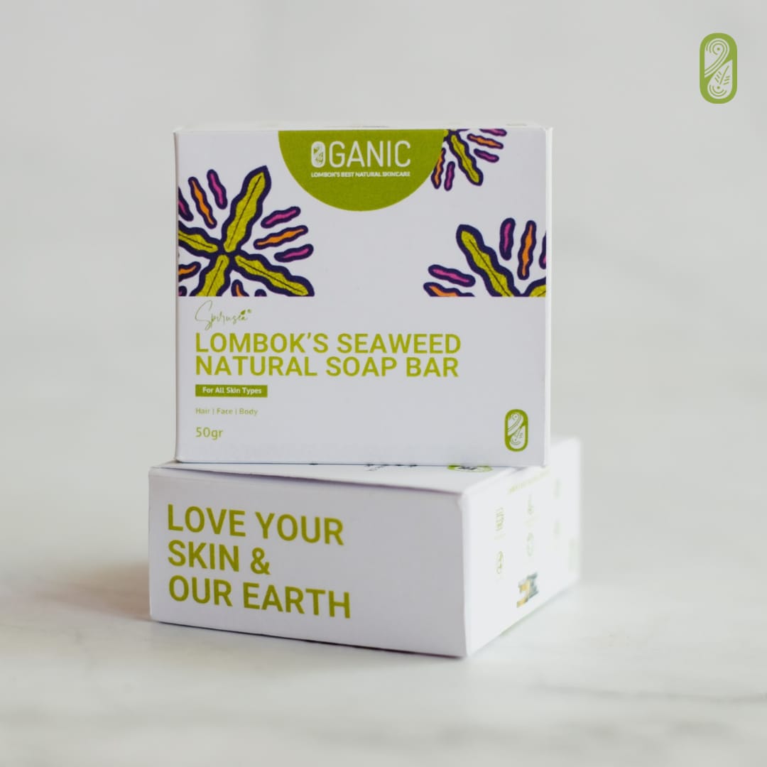 Oganic Lombok's Seaweed Natural Soap Bar diformulasikan secara khusus dengan kandungan Seaweed. Tak sekedar melembapkan kulit, manfaat rumput laut untuk kecantikan juga mampu menjadi natural collagen untuk kulit.
