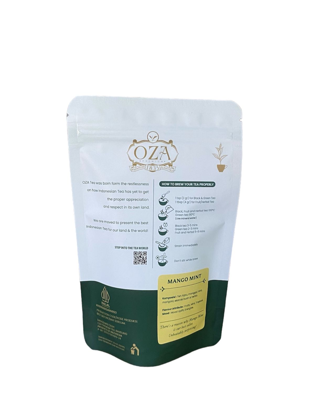Kandungan Bahan: Green Tea, Mango Bits, Mint, flavour extract, Marigold Profile: Light-Bright