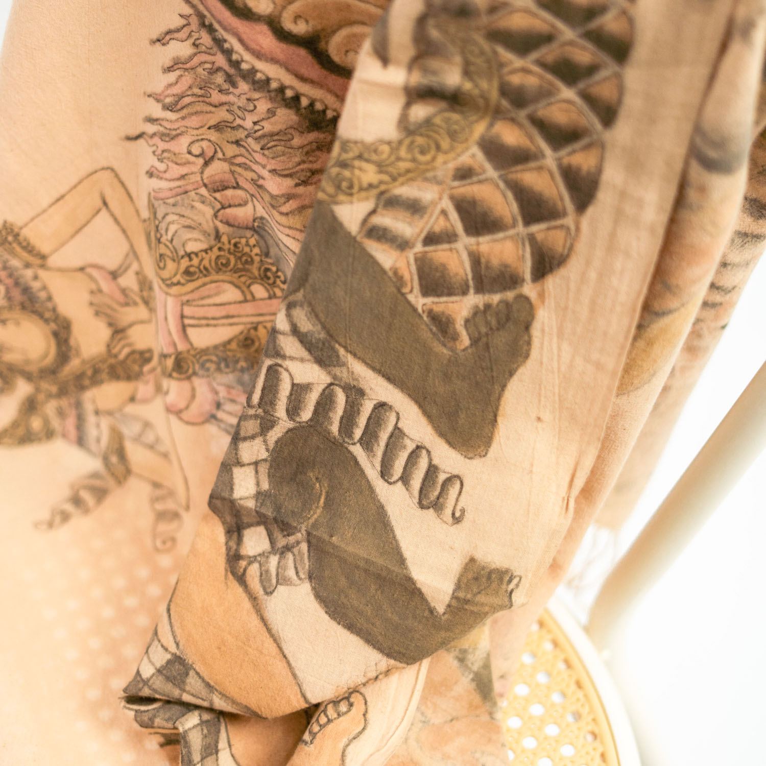 Makna Motif: Mengisahkan sutasoma seorang raja dari kerajaan astina melarikan diri dan melakukan pertapaan ditengah hutan,di tengah perjalanan di hadang oleh seekor naga dan sutasoma di telan oleh naga tersebut.
