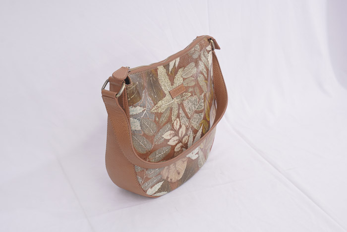 tas bahu dengan bahan full kulit,kulit domba yg di motif dgn tehnik ecoprint n pewarna alami
