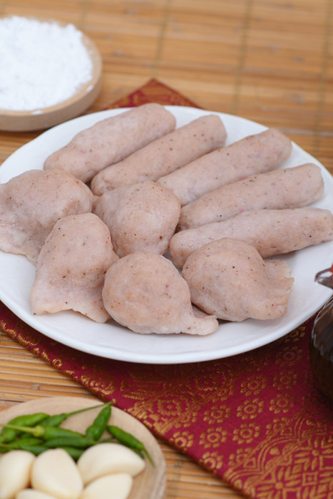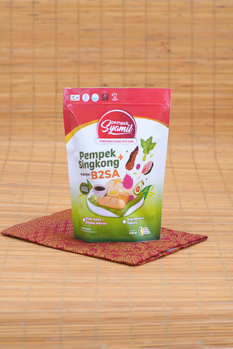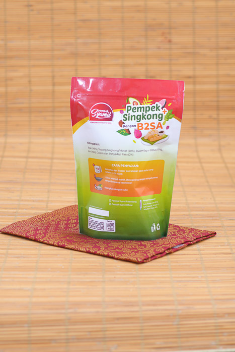 Kandungan Bahan: Ikan tenggiri, tepung singkong,/mocaf, buah naga + bayam merah, air, garam dan penyedap rasa
