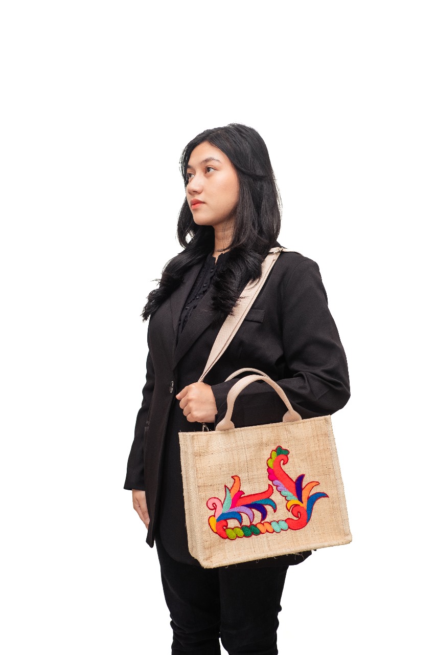 Jenis Bahan: serat daun doyo dan benang sulam