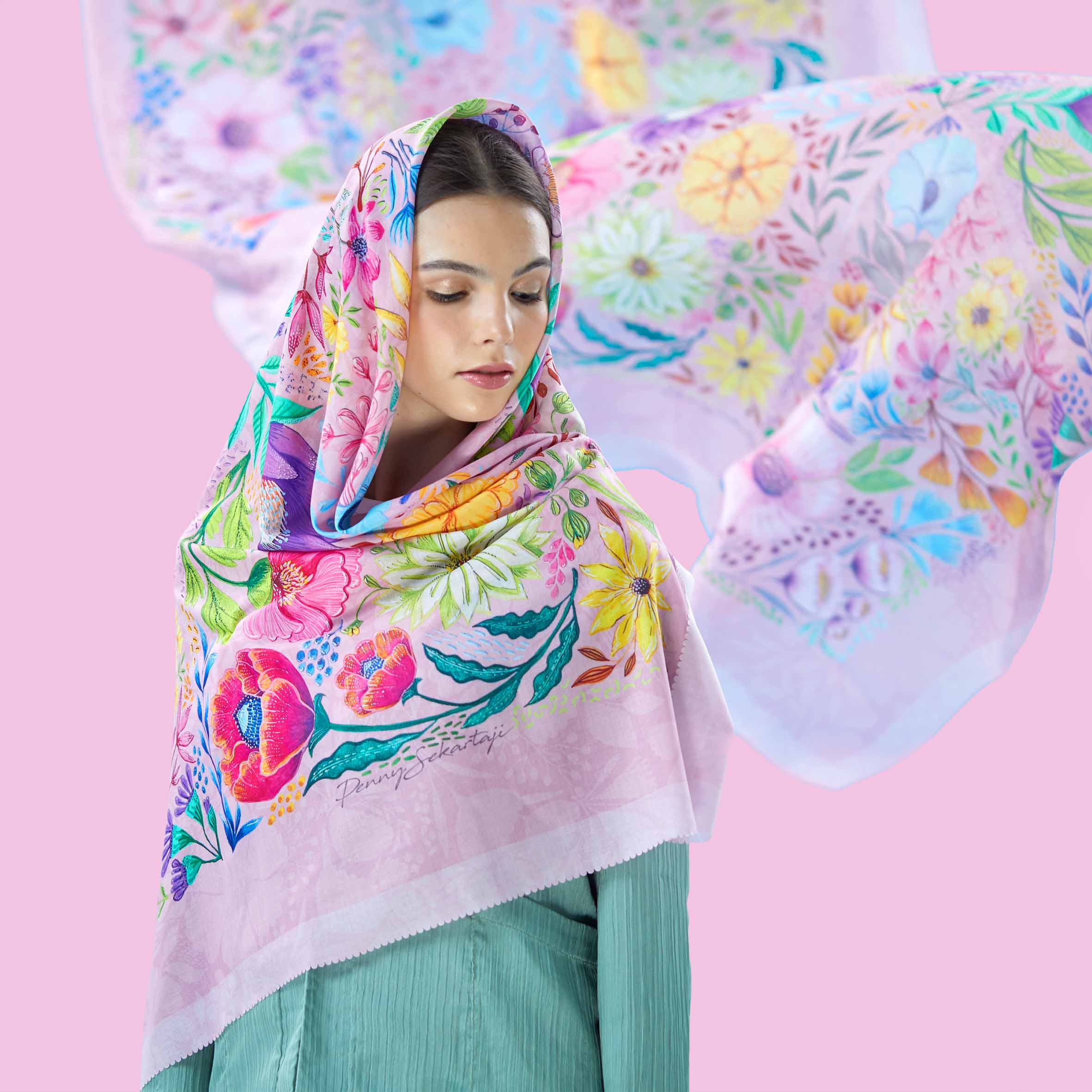 Square Scarf Sekar Antara Pink