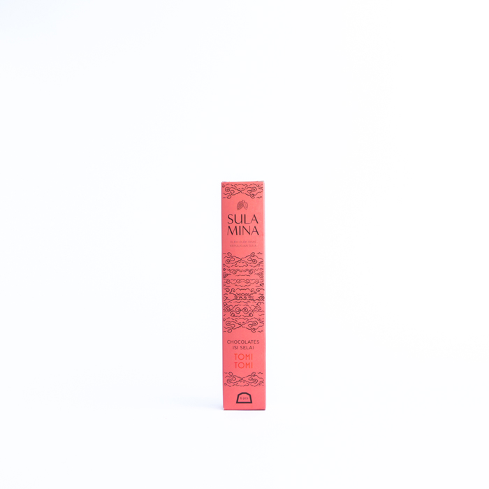 Cangkang cokelat pekat yang kaya rasa membungkus isian selai buah Tomi-Tomi yang segar, asam, tajam dan manis.