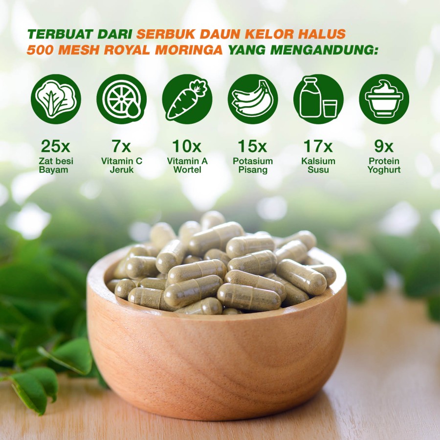 Kapsul daun kelor memiliki kandungan gizi dan nutrisi sangat tinggi yang dapat membantu untuk: