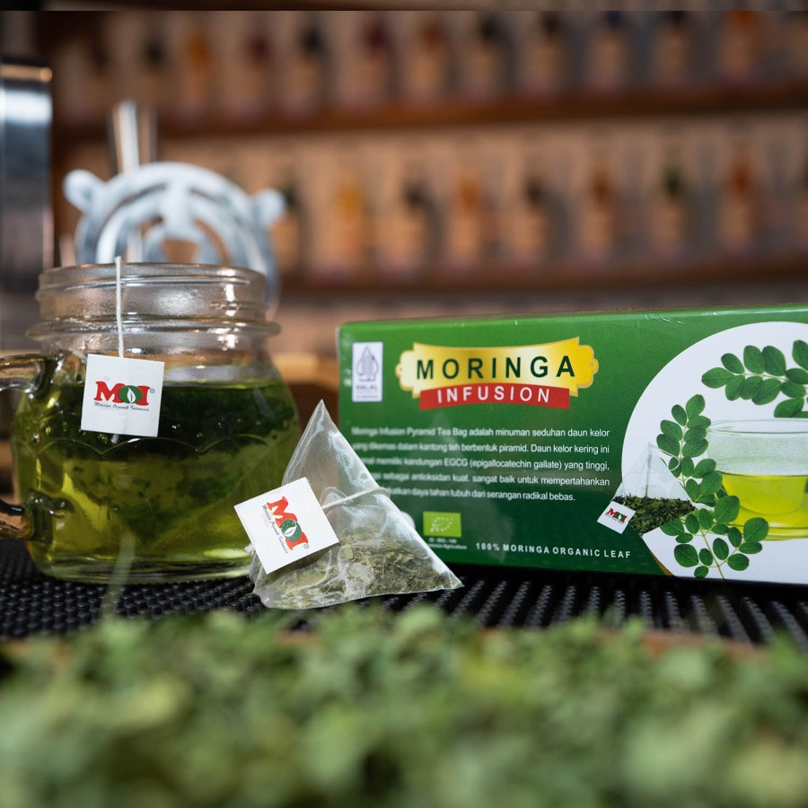 Moringa Pyramid Tea adalah seduhan daun Kelor organik 100% yang diolah dengan cara yang sangat khusus sehingga menghasilkan produk turunan terbaik yang menjadi best produk MOI.