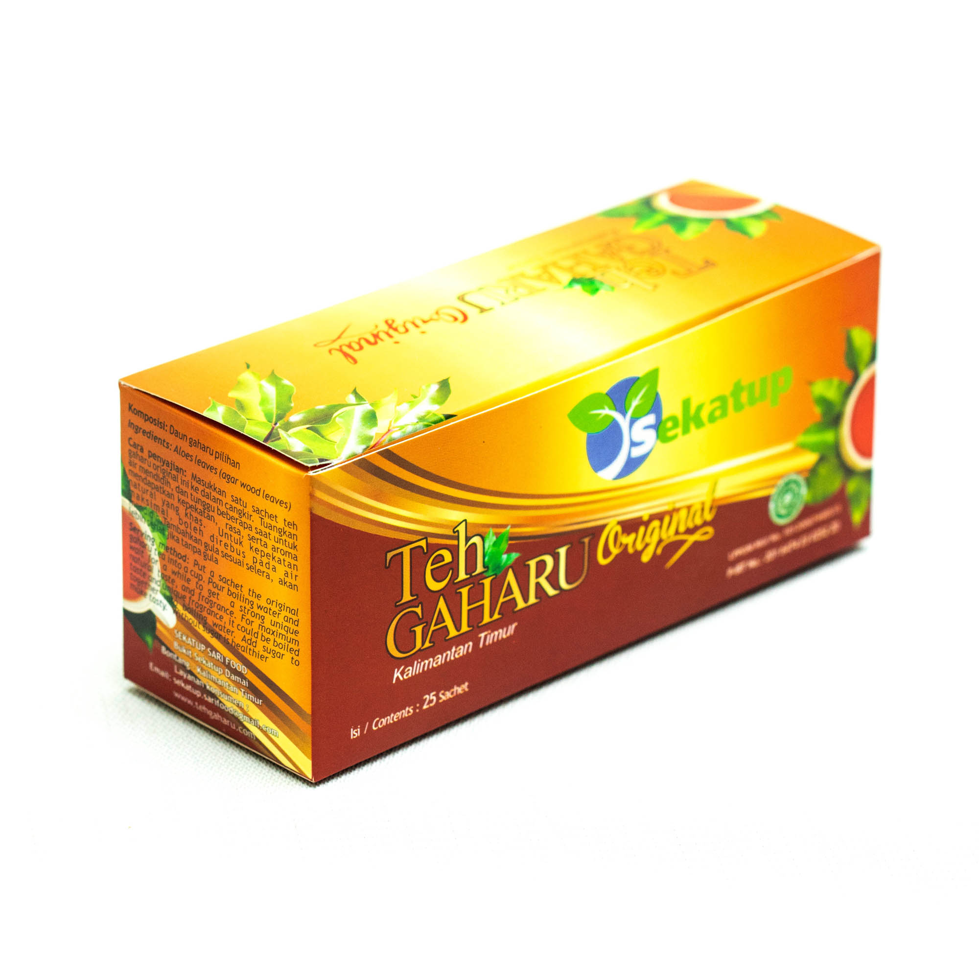 dengan jaminan kualitas dan manfaat. Dibuat dari daun Aquilaria mallacensis (daun gaharu) dan Cinnamomun (kayu manis), sehingga terjamin keaslian dan mutunya, mulai dari proses pemetikan daun, pengolahan, hingga pendistribusiannya.