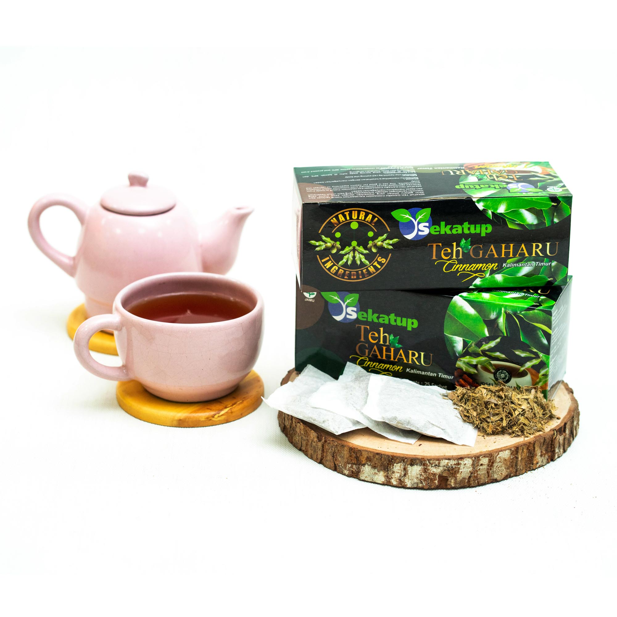 Teh Gaharu Cinnamon merupakan produk asli Kalimantan Timur dengan bahan baku yang bersumber dari perkebunan sendiri dengan jaminan kualitas dan manfaat. Dibuat dari daun Aquilaria mallacensis (daun gaharu) dan Cinnamomun (kayu manis), sehingga terjamin keaslian dan mutunya, mulai dari proses pemetikan daun, pengolahan, hingga pendistribusiannya. Sekatup Sari Indonesia sebagai produsen sejak tahun 2015, terdapat lebih dari 3000 pohon Gaharu di perkebunan sebagai bahan baku utama, dengan pohon yang telah berumur hingga 8 tahun.