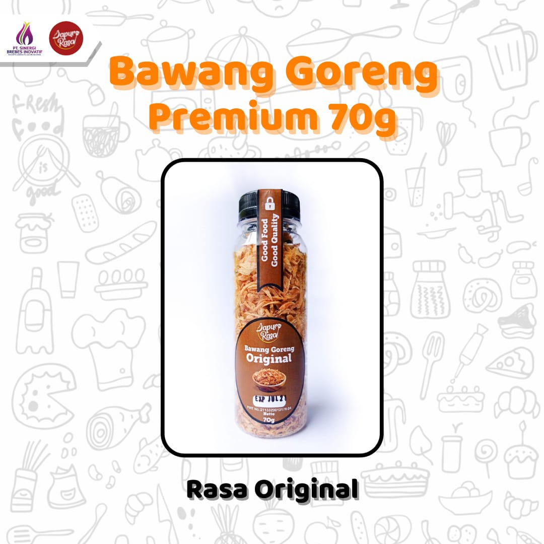Bawang Goreng Brebes "Dapur Rasa" adalah produk yang terbuat dari bawang Brebes asli. Renyah, sehat, dan nikmat serta berkualitas tinggi. bawang goreng ini bisa buat lauk dengan cara ditaburkan di makanan Anda ataupun bisa buat camilan.