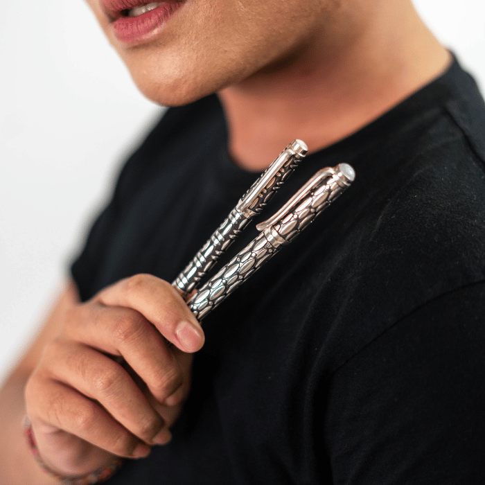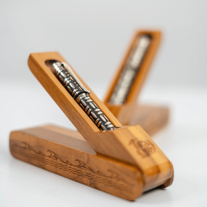 Wijaya Pen adalah pulpen perak yang memadukan desain sederhana dan elegan dengan motif tribal Bali yang berani dan tegas. Dilengkapi dengan ukiran tangan yang rumit, pulpen ini bukan hanya alat tulis, tetapi juga sebuah karya seni yang memancarkan wibawa dan kekuatan. Keunggulan Wijaya Pen: Desain Unik: Motif tribal Bali yang diukir dengan tangan memberikan sentuhan budaya dan keunikan pada pulpen ini. Bahan Berkualitas: Terbuat dari perak murni, Wijaya Pen memiliki kilau yang menawan dan tahan lama. Nyaman Digunakan: Bentuknya yang ergonomis dan bobotnya yang pas membuatnya nyaman digenggam dan digunakan untuk menulis. Meningkatkan Kepercayaan Diri: Desainnya yang elegan dan berwibawa akan meningkatkan rasa percaya diri Anda saat menggunakannya. Hadiah Istimewa: Wijaya Pen adalah hadiah yang sempurna untuk orang yang Anda hormati atau untuk diri sendiri sebagai simbol prestasi dan pencapaian.