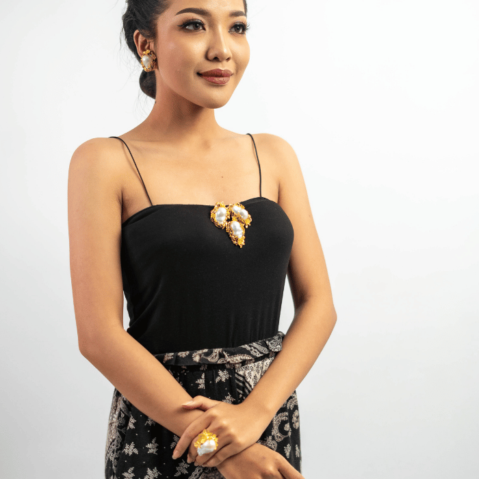 Kekayaan laut Lombok seolah tak habis membuat kita tepakau. Di dalam kekayaan tersebut, ada yang dinamakan mutiara barok (baroque) yang diambil dari bahasa Prancis yang memiliki arti "berbentuk tidak wajar". Karena ketidak beraturannya, maka hampir tidak ada mutiara barok yang memiliki kesamaan yang menjadikannya unik. Set Manohara ingin membawakan pesan bahwa bahkan ketidakteraturan bentuk pun akan dapat bersinar dengan indah jika kita dapat mengemasnya dengan baik, dimana barok ini kami berikan detail bingkai bunga kamboja dan sulur daun yang mengingatkan mengikuti bentuk ketidakberaturan dari mutiara barok itu sendiri. Set Manohara adalah sebuah kilau indah dari Pulau Bali.
