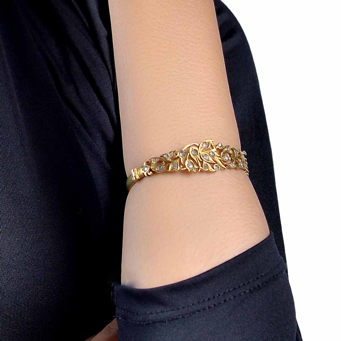 GELANG KEMBANG MATA INTAN, DENGAN UKURAN YANG TIDAK TERLALU BESAR, MOTIF KEMBANG YANG SALING MENYAMBUG MELAMBANGKAN KEHIDUPAN MANUSIA YANG SALING MEMBUTUHKAN SATU SAMA LAIN