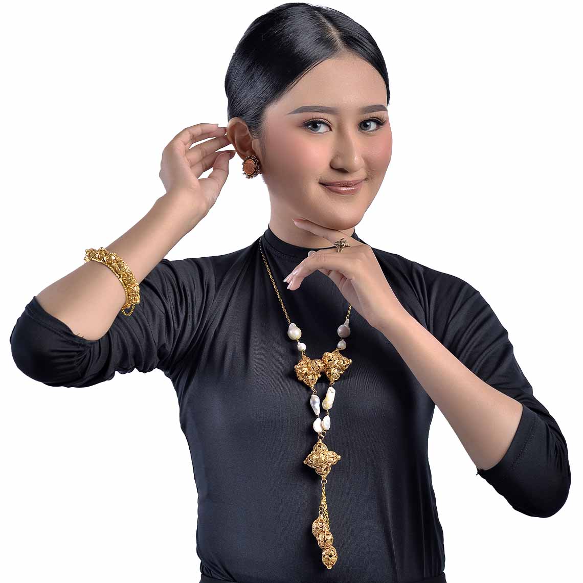 As a jewelry business that runs in this era of globalization, Pyo Jewelry must compete with others by highlighting its strengths. The business, started by Luthfia Fataty since 2015, offers two main collections; 'Heritage' and 'Contemporary'. 'Heritage' is made with pride in Indonesian culture. Antique jewelries, as well as replicas of historical jewelry deigns of the archipelago, such as Sriwijaya accessories, anak ayam necklaces, and tapak jajo necklaces are some of the products that can be found under the 'Heritage' line. Through the second line, 'Contemporary',