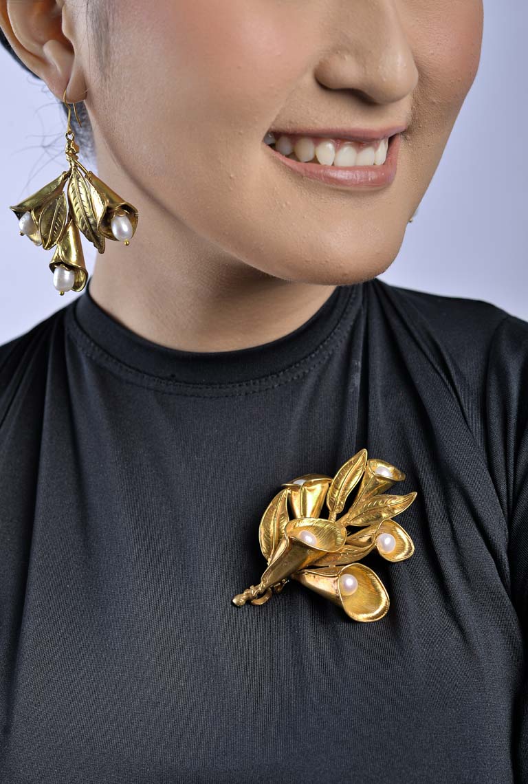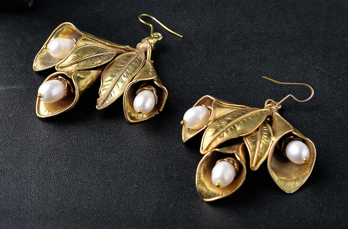 ANTING LILY MEMILIKI BENTUK LILY YANG MENJUNTAI KEBAWAH, PENAMBAHAN MUTIARA AIR TAWAR