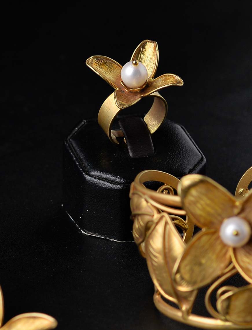 CINCIN KEMUNIING MEMPUNYAI BENTUK MENYERUPAI BUNGA KEMUNING YANG DIHIASI DENGAN MUTIARA AIR TAWAR