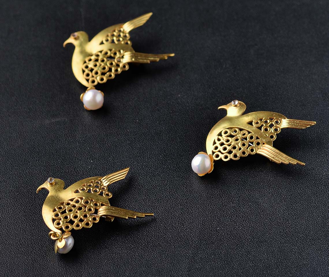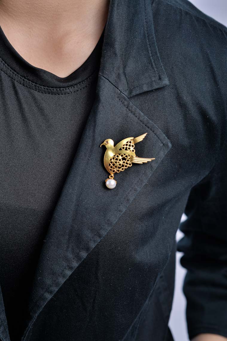 BROS BURUNG MEMILIKI BENTUK BURUNG, PERMATA MENGGUNAKAN DIAMOND DAN MUTIARA AIR TAWAR