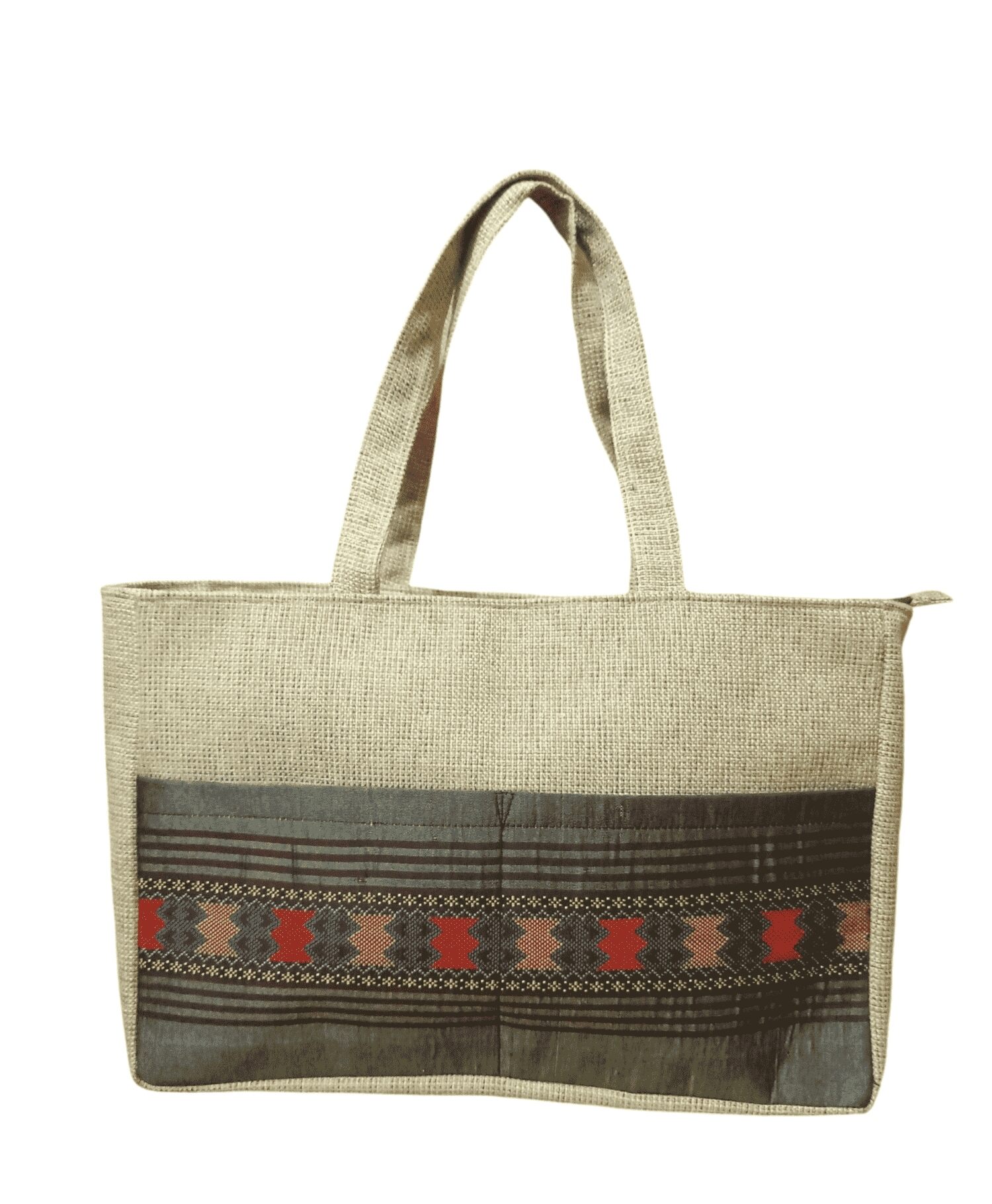 Tote bag dengan ruang dalam yang besar ,yang di buat dari bahan dasar kain goni kanvas di mix dengan kain tenun ulos Toba.