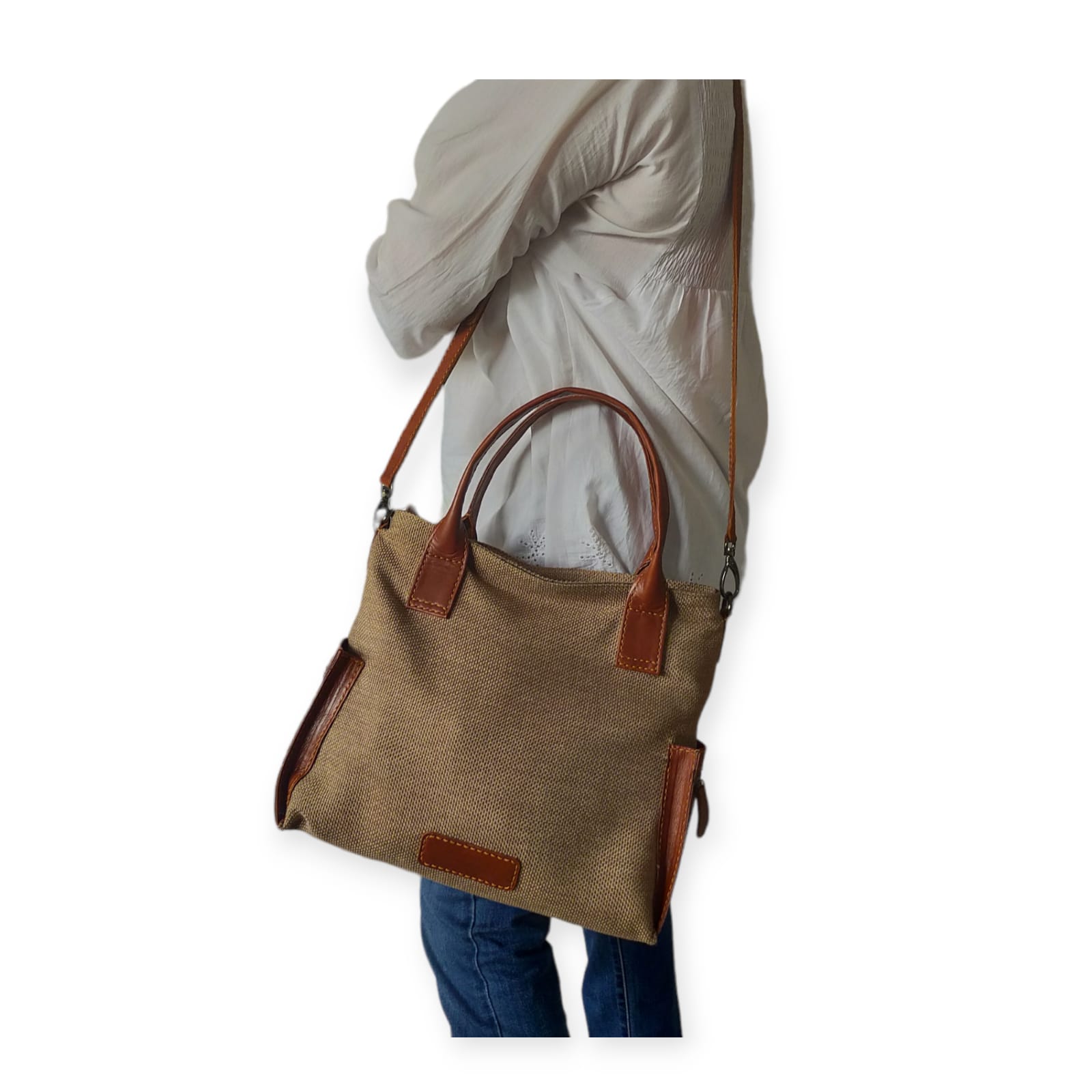 Jenis Bahan: Kulit sapi Pull-up dan Goni halus - Genuine Leather Pull-up and Premium Jute