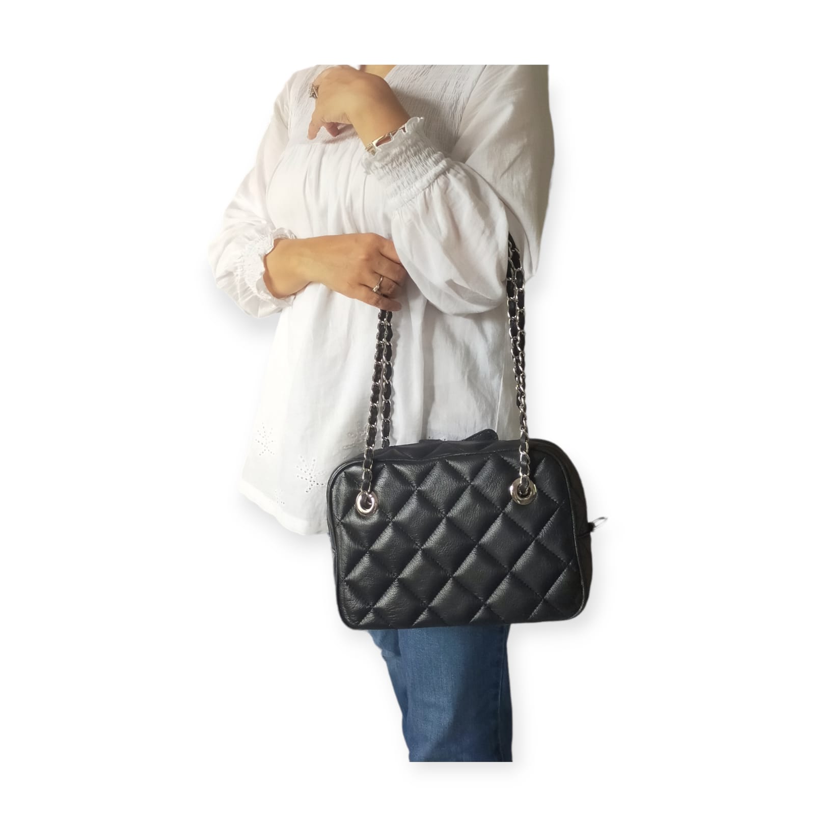 beda. Tali selempang yang terbuat dari nilon kian mempertegas