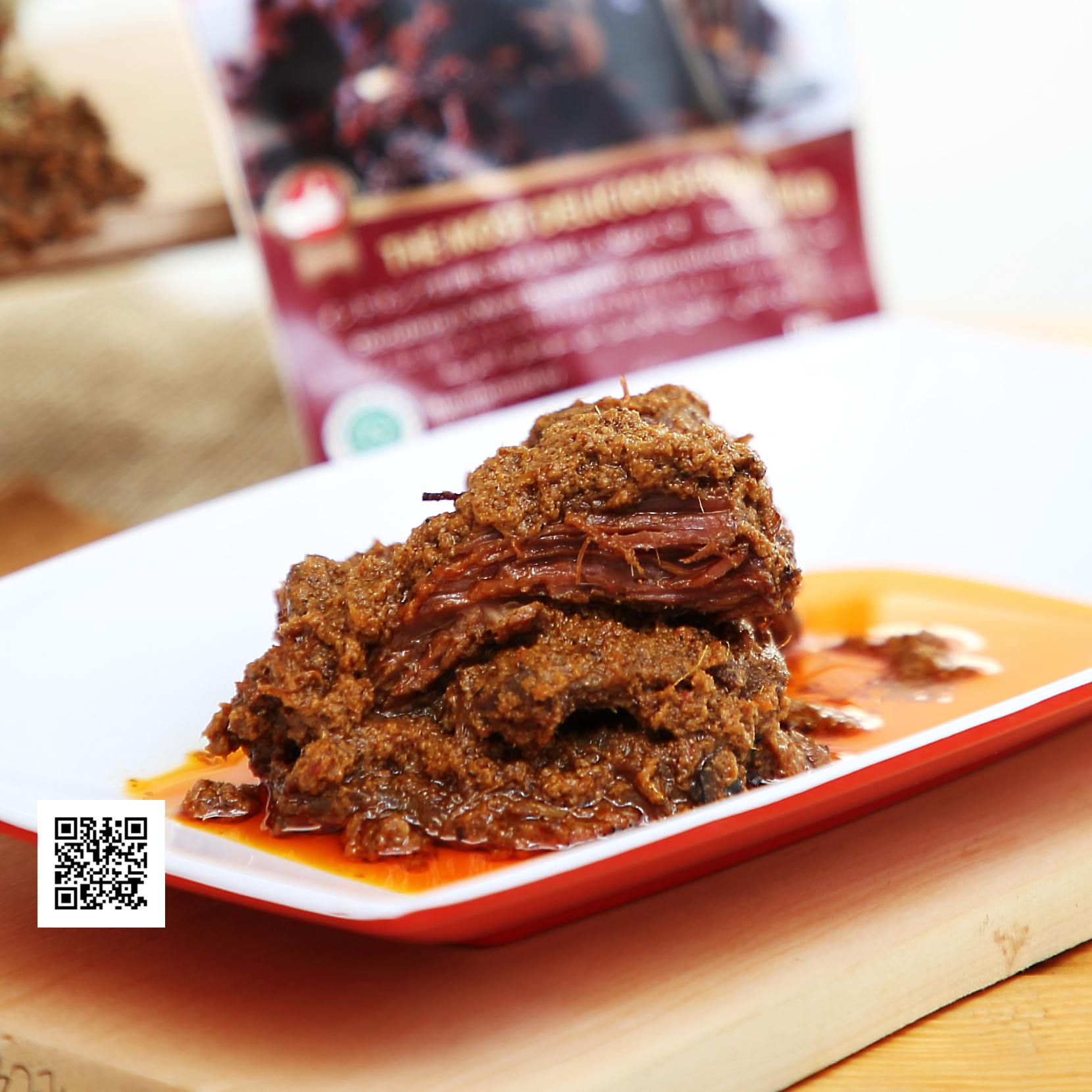 Kandungan Bahan: Daging Sapi 80%, Santan, Minyak Goreng, Cabai Merah, Bawang Merah, Serai, Jahe, Bawang Putih, Lengkuas, Kunyit, Daun Kunyit, Daun Jeruk Purut, Ketumbar, Pala, Bunga Lawang, Merica, Garam (80% beef, coconut milk, cooking oil, red chili, shallots, lemongrass, ginger, garlic, galangal, turmeric, kunyit leaves, kaffir lime leaves, coriander, nutmeg, bunga lawang, pepper, salt)