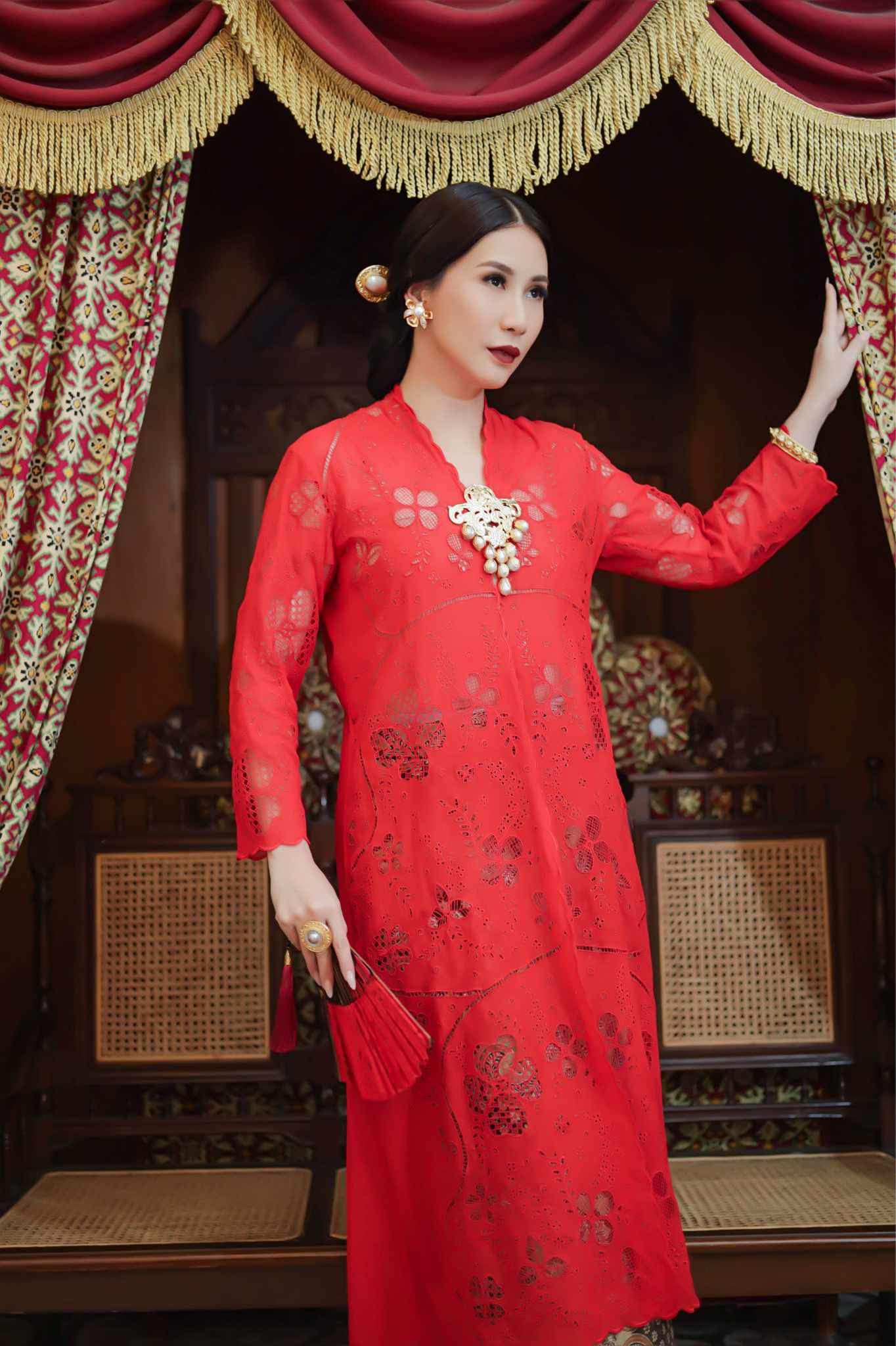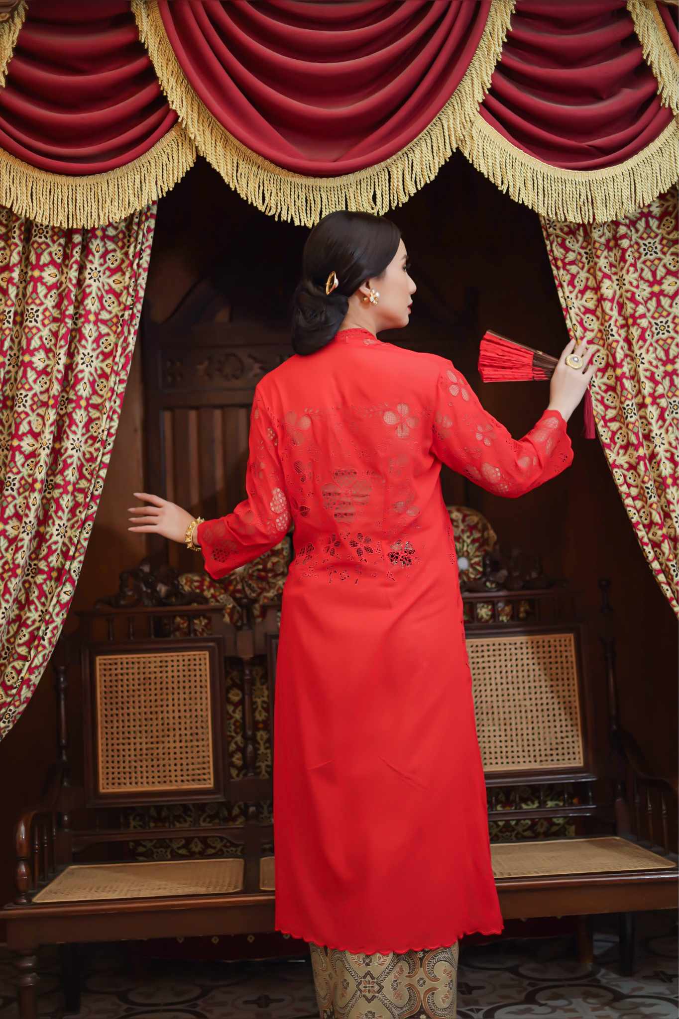 Kebaya Panjang Kembang Sepatu Kerancang Merah