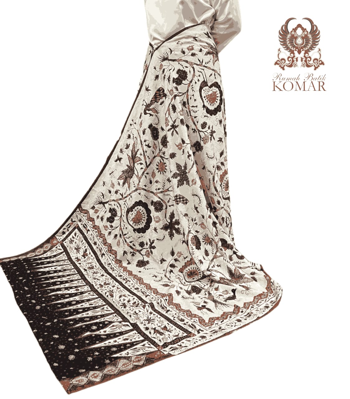 Makna Motif: Mengilustrasikan keindahan bunga Soka. Babaran mas dan latar putih menjadi kekuatan corak dan penanda genre batik tulis Cirebonan