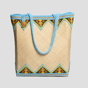 Terbuat dari upcycled celana jeans tidak terpakai dengan aplikasi patchwork dari kain tenun blongsong, bagian dalam terdapat 2 kantong. Dilengkapi dengan handel sling dari webbing polyester tebal dengan aplikasi kulit sapi