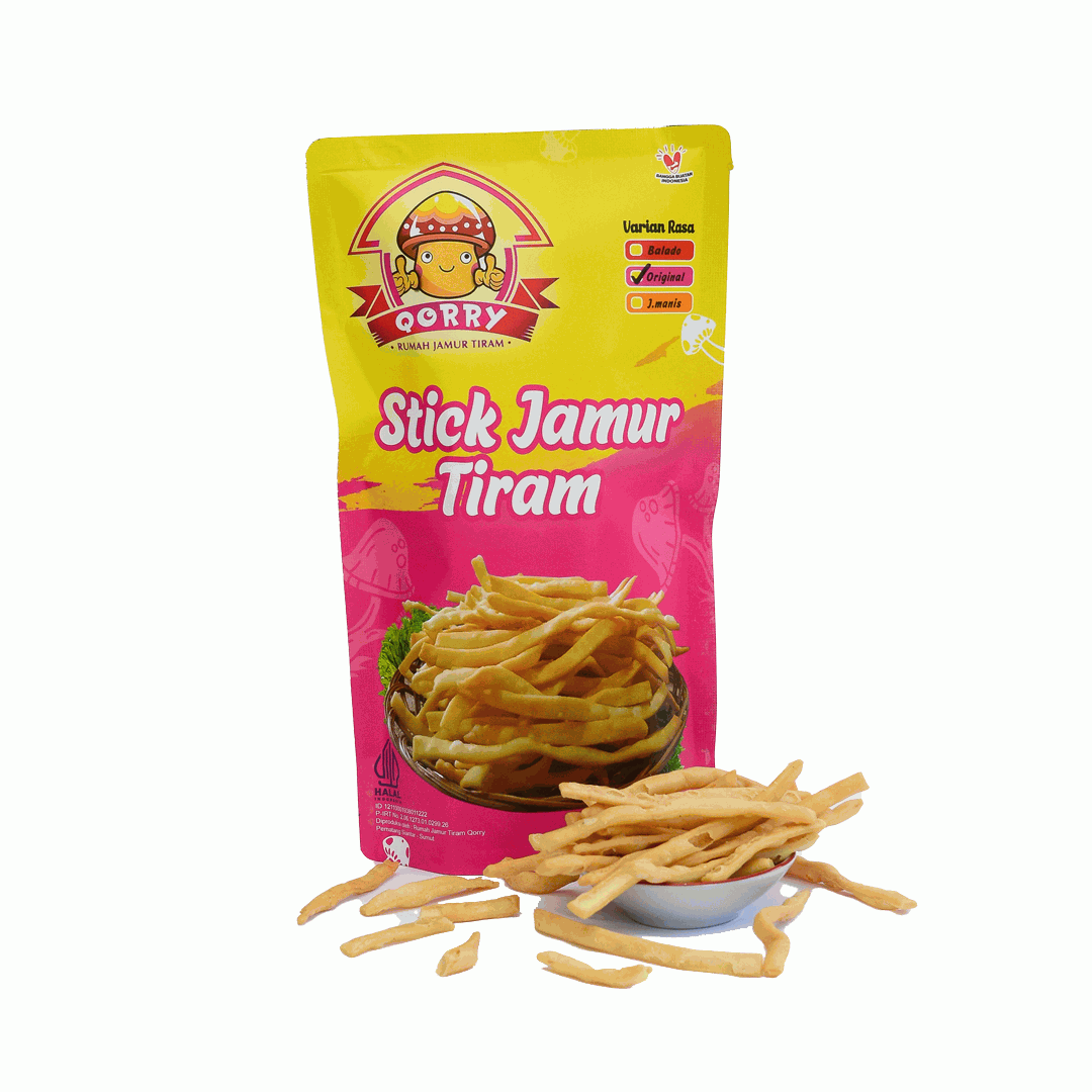 | Rumah Jamur Qorry adalah Usaha dari Hulu ke Hilir ,mulai dari pembibitan jamur tiram sampai olahan makanan, seperti crispy jamur tiram dan stick jamur tiram. stick jamur tiram ada 3 varian rasa yaitu original, balado dan jagung manis.Ssudah mendapatkan izin Dep kes ,NIB dan Halal MUI,.Crispy dan stick jamur tiram memakai tepung mocaf atau tepung singkong yg di fermentasi menjadi tepung mocaf. |