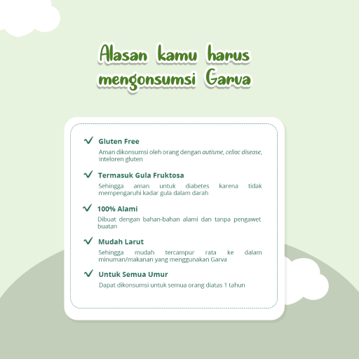 Masih ragu menggunakan gula singkong Garva? Coba dulu aja. Dan rasakan nikmatnya hidup sehat ?