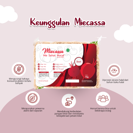 Miecassa merupakan mie rendah gluten dengan tepung mocaf sebagai bahan baku utama. Diracik dari bahan-bahan terbaik untuk menghasilkan mie yang lezat untuk konsumsi keluarga Anda.
