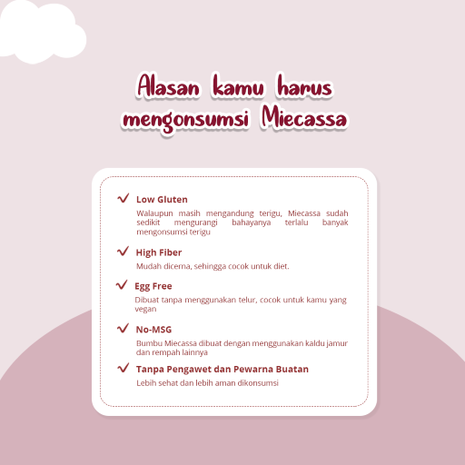 Masih ragu mengkonsumsi Miecassa? Coba dulu aja. Dan rasakan nikmatnya mie sehat ?