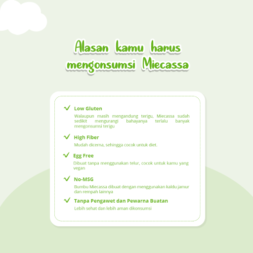 Masih ragu mengkonsumsi Miecassa? Coba dulu aja. Dan rasakan nikmatnya mie sehat ?