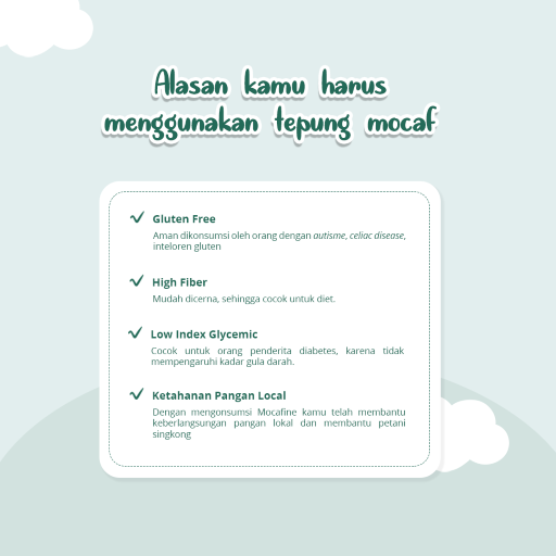 Masih ragu menggunakan tepung mocaf Mocafine? Coba dulu aja. Dan rasakan nikmatnya hidup sehat ?