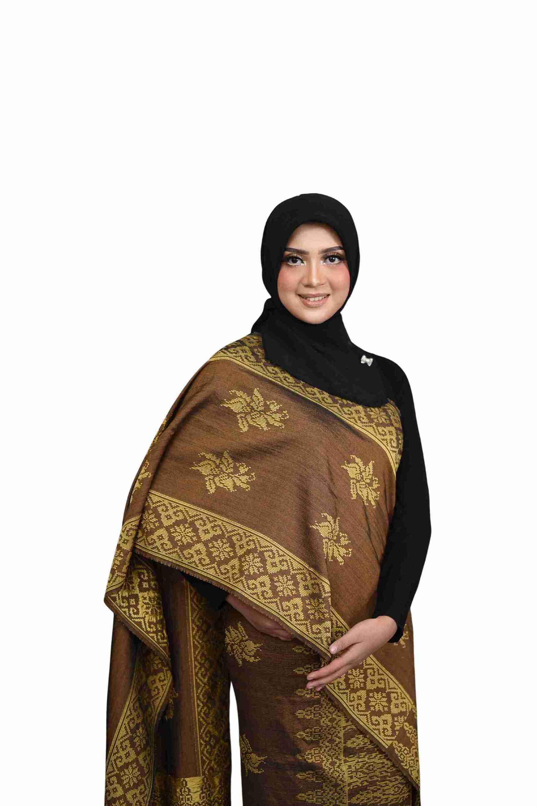 Makna Motif: Memakai tenunan tajuk puteri, Adat tegak lembaga berdiri, Niat sampai murahlah rezeki, Tuahnya menjadi payung negeri