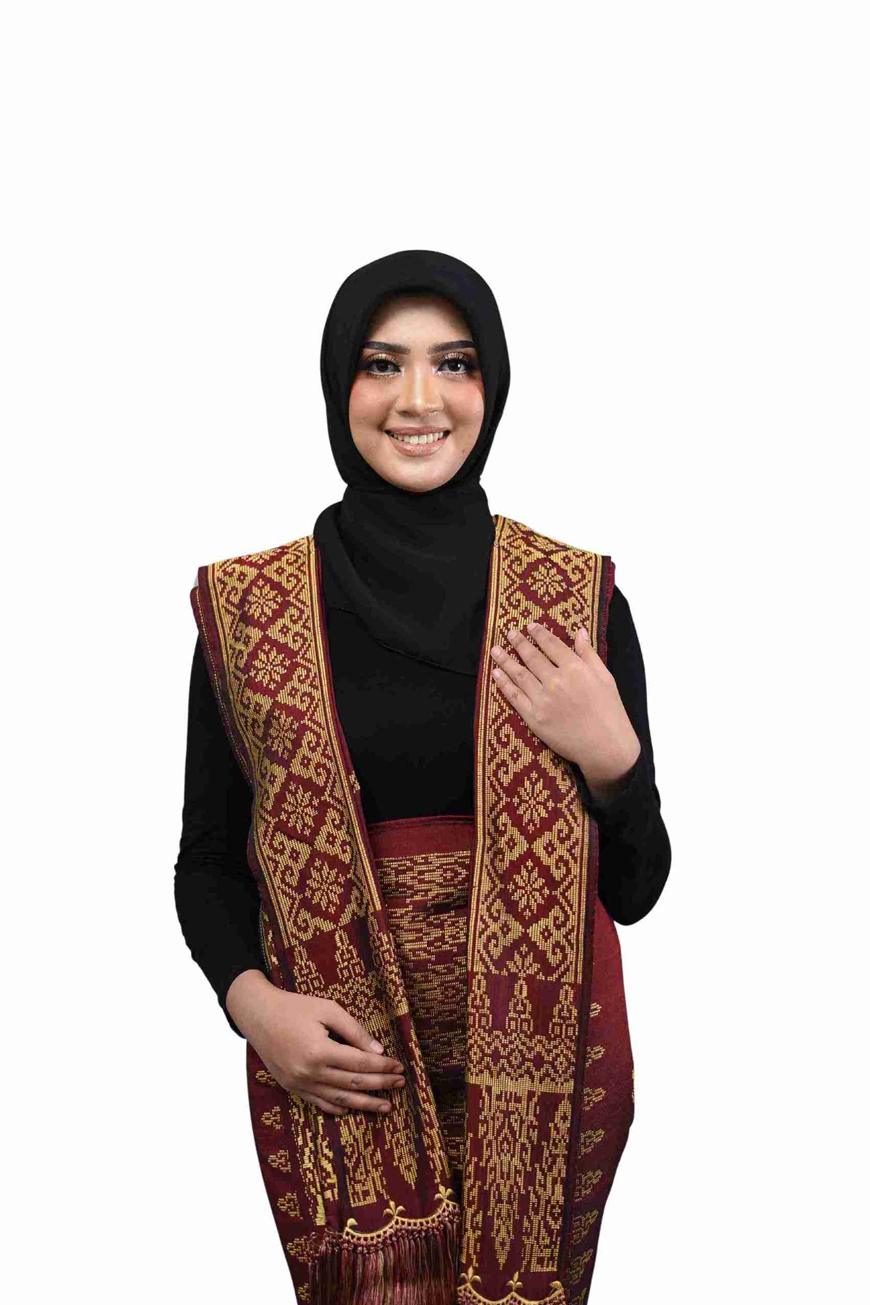 Makna Motif: Filosofi : Memakai tenun tajuk puteri, Adat tegak lembaga berdiri, Niat sampai murahlah rezeki, Tuah menjadi payung neegeri