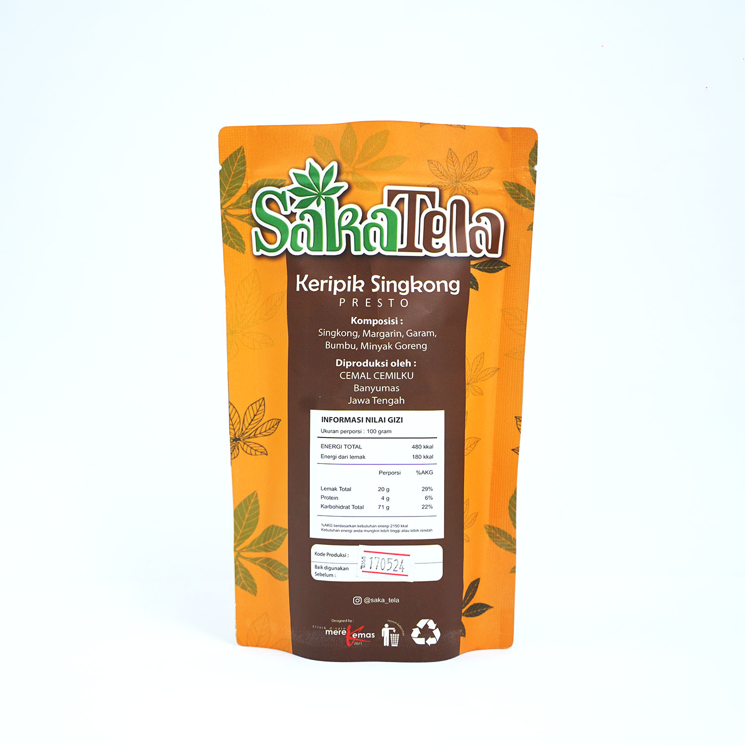 Sakatela adalah keripik singkong yang terbuat dari bahan-bahan berkualitas, melalui proses perebusan sebelum digoreng, menjadikan keripik ini teksturnya lembut dan renyah yang membuatnya berbeda dengan keripik singkong yang ada di pasaran. Irisan yang kecil memudahkan untuk dikonsumsi dan proses spinner setelah digoreng membuat rasa sakatela semakin gurih dan renyah. Sakatela memiliki legalitas berupa PIRT, Halal dan HKI. Umur simpan produk 10 bulan