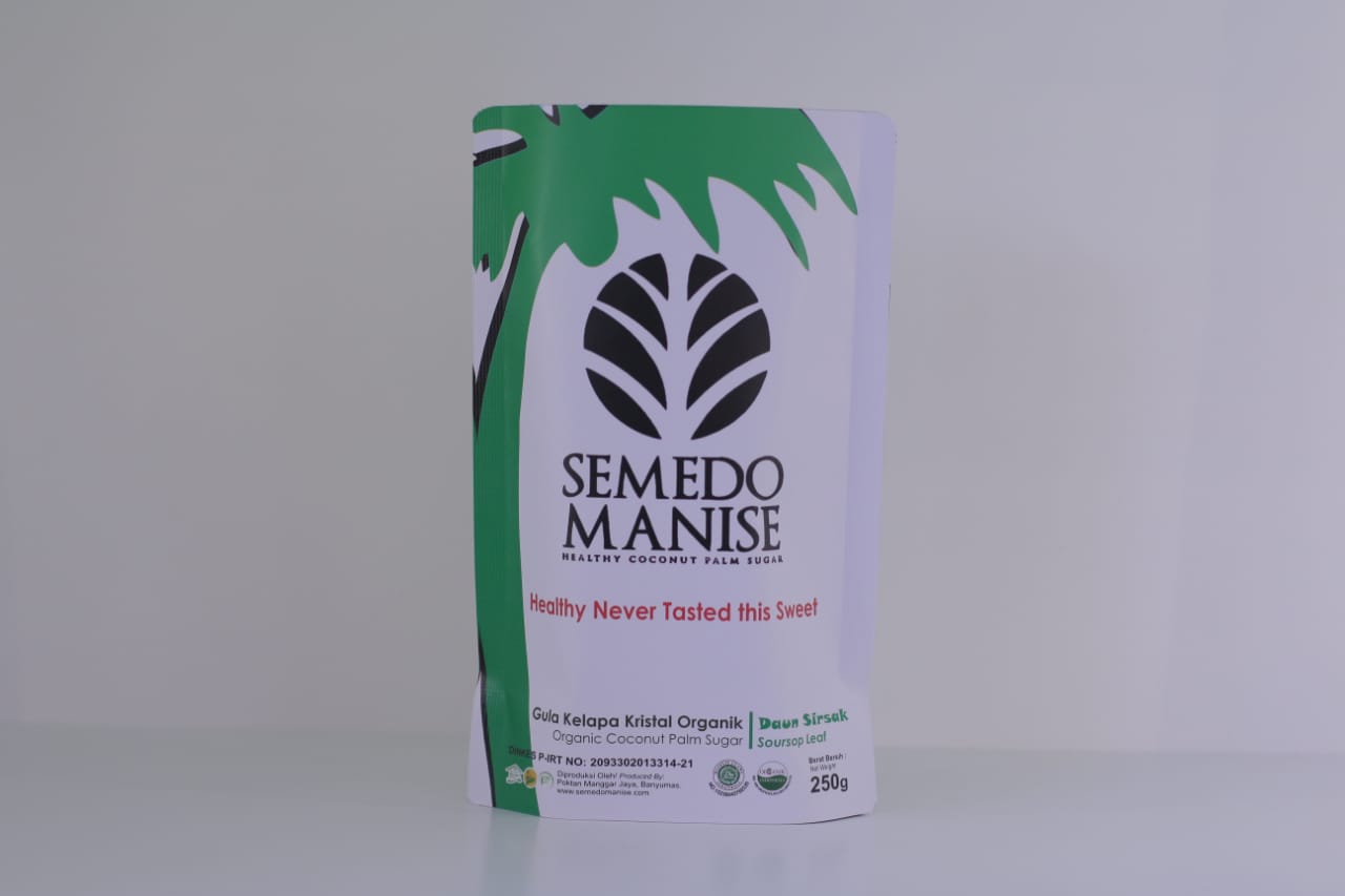 Semedomanise Ekstrak Daun Sirsak merupakan bahan minuman yang dibuat dari air nira kelapa yang sudah diproses sebagai minuman organik untuk penguat rasa, meningkatkan energi dan kesehatan. Semedomanise Ekstrak Daun Sirsak dibuat dengan tambahan sari-sari temu lawak dan kulit manggis dll. Baik untuk kesehatan karena memiliki index glycemic (GI 35) yang sangat rendah dari gula tebu dengan GI 68 dan GI Madu 55, sehingga baik untuk penderita deabetes.