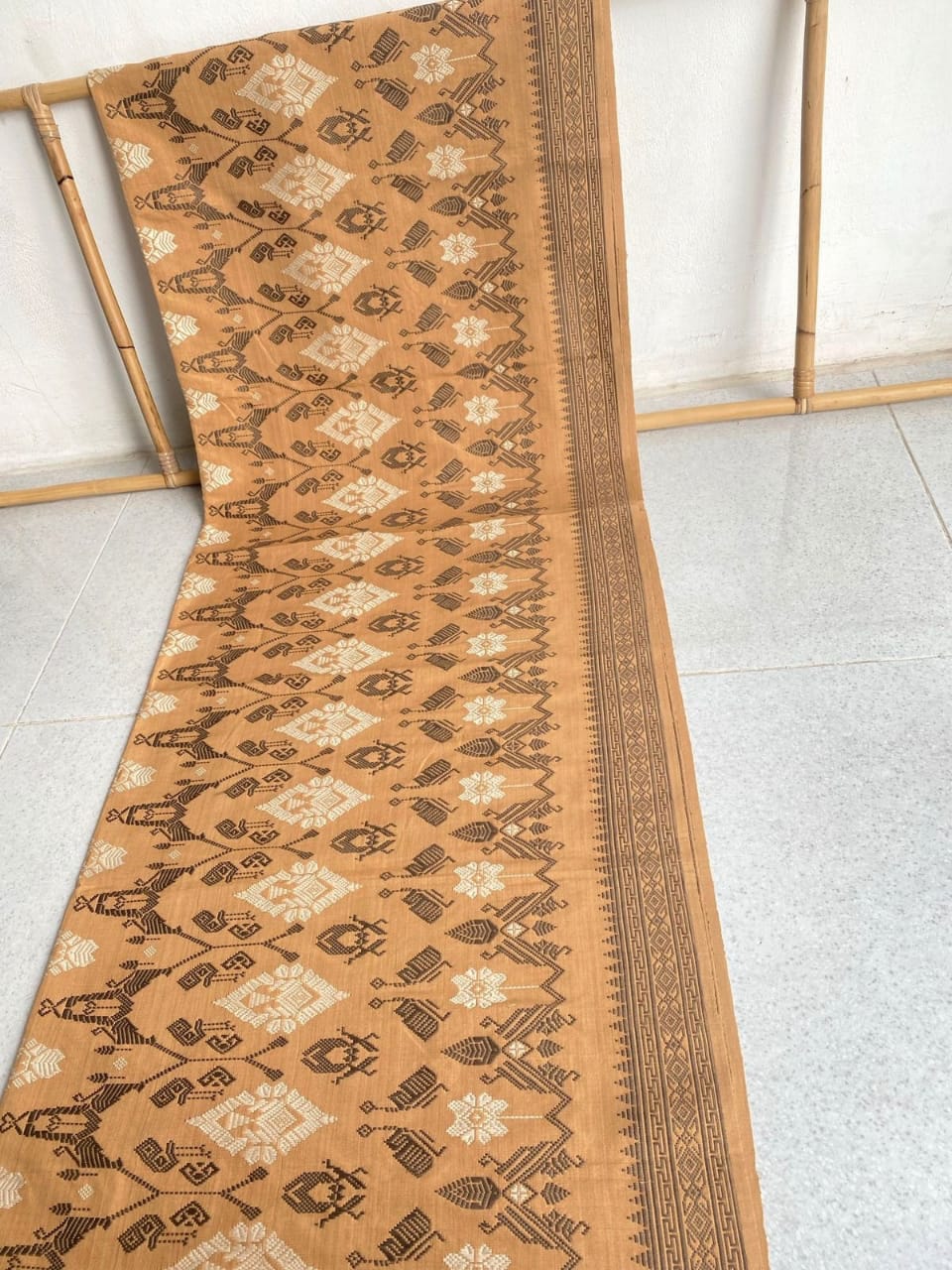Makna Motif: Motif ini terinspirasi dari tanaman simpor (Dillenia Suffruticosa) yang merupakan tanaman khas Belitung. Daun Simpor biasanya digunakan untuk membungkus makanan karena memiliki aroma yang khas dan wangi. Tanaman simpor melambangkan kebijaksanaan dan cinta universal. Perbedaan bentuk tanaman simpor mengartikan regenerasi kehidupan, keharmonisan dan saling menghormati antara yang muda dan tua. (This motif is inspired by the Simpor plant (Dillenia Suffruticosa), which is a typical plant of Belitung. Simpor leaves are often used to wrap food due to their distinctive and fragrant aroma. The Simpor plant symbolizes wisdom and universal love. The variation in the shape of the Simpor plant signifies the regeneration of life, harmony, and mutual respect between the young and the old)