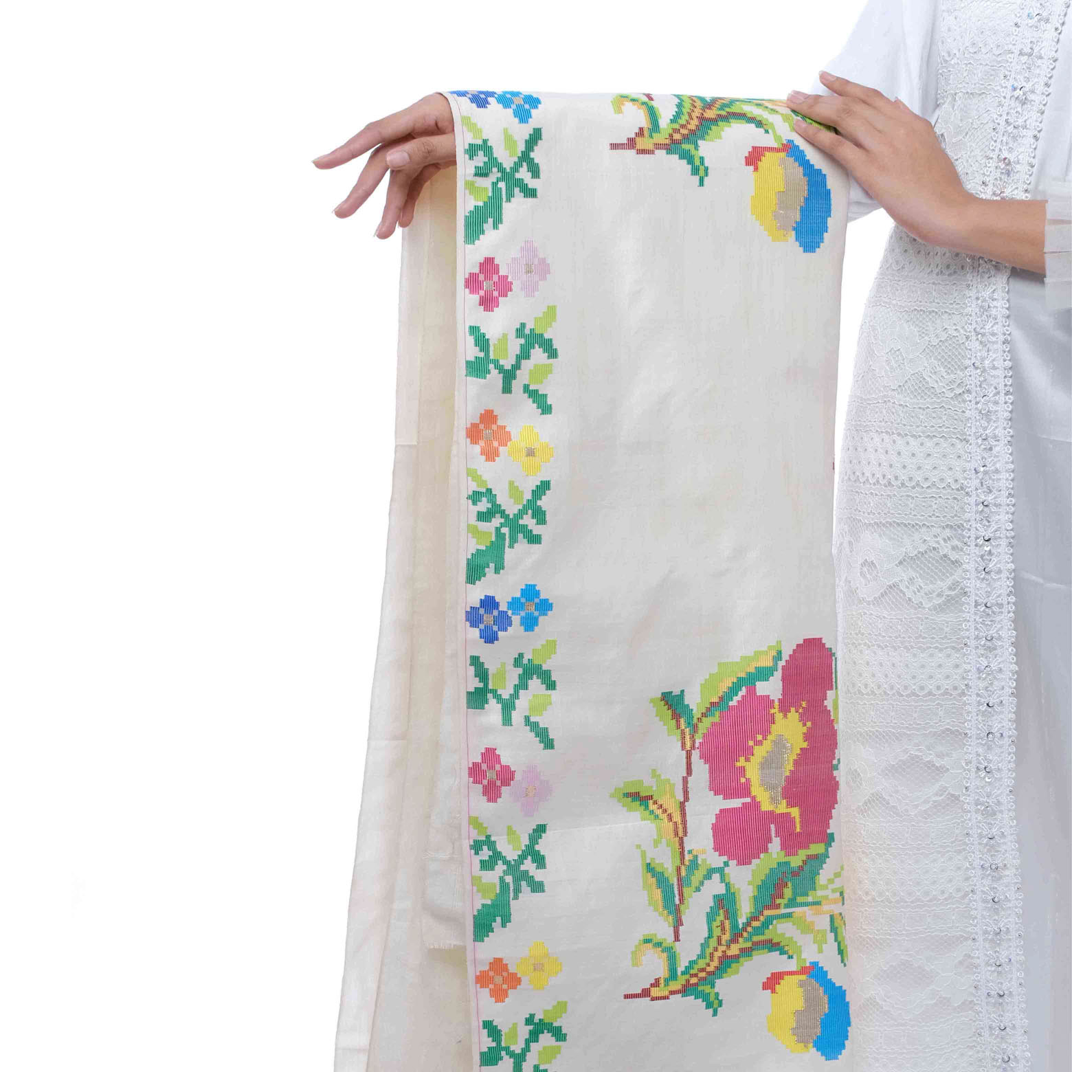 Makna Motif: Terinspirasi dari tupai selat atau tusena yang berasal dari selat Nasik yang memiliki keindahan dari kombinasi tiga warna. Selain itu, terdapat motif daun Simpor yang merupakan tanaman khas Belitung. Tanaman simpor melambangkan kebijaksanaan dan cinta universal. Perbedaan bentuk pada tanaman Simpor mengartikan regenerasi kehidupan, keharmonisan dan saling menghormati antara yang muda dan tua. (Inspired by the Selat squirrel or tusena, which originates from Selat Nasik and possesses the beauty of a three-color combination. Additionally, there is the motif of Simpor leaves, representing the characteristic plant of Belitung. The Simpor plant symbolizes wisdom and universal love. The differences in shapes in Simpor plants signify the regeneration of life, harmony, and mutual respect between the young and the old)