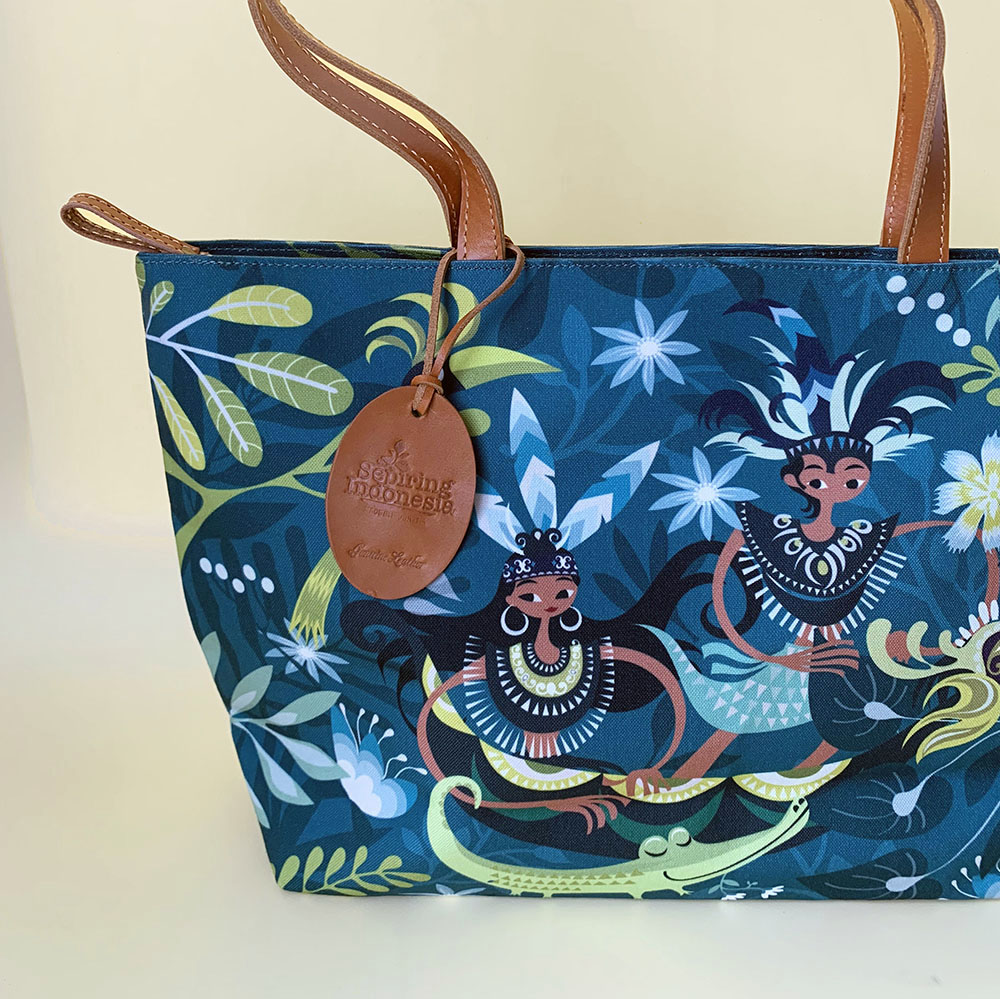 Jenis Bahan: Printed Canvas & Genuine Leather Handle